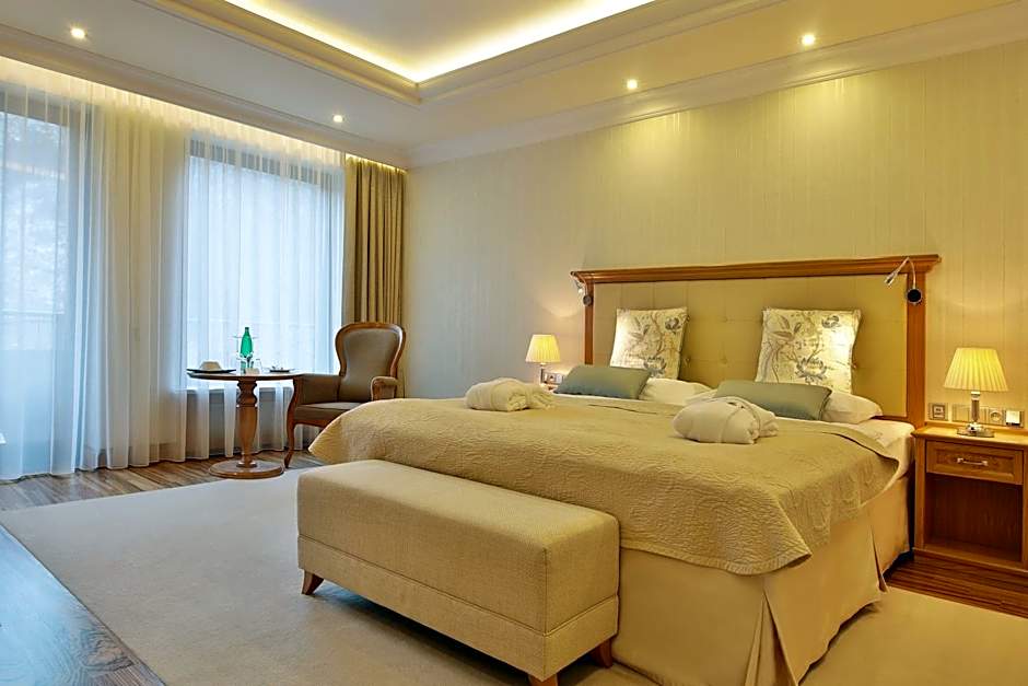 This room offers a package that includes: - 1 romantic candle-light 3-course dinner with glass of wine - Thai massage (60min) per person per stay - 1 ice-cold bottle of Prosecco wine and fruit bowl or a chocolate box - 1 welcome drink per person per stay - Romantic room decoration - free parking - unlimited acces to hotel wellness - 25% Discount from full green fee prices on Gary Player’s Course